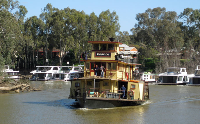 We felt good to be out on the road and breathing in our surrounds from the lush ferns and foliage of Black Spur to the vast river valleys and plains as we headed north. We had a restful couple of days with Ian (Mac) & Annie, Ian (Nico) & Margaret on a houseboat moored on the bank of Lake Eildon and in spite of pretty hot weather the breeze off the water made for a comfortable temperature. A couple of jaunts across the Lake in the run-around showed the Lake (now near enough to full) to be a staggering size with tentacles of water snaking in all directions.