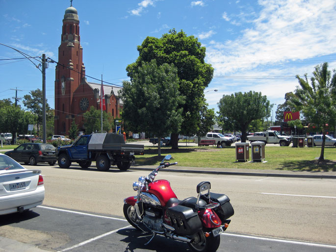 A couple of tourist attractions side by side in Bairnsdale – St Mary’s Cathedral known for the striking painted ceiling and McDonalds known for their yummy coffee and easy parking. Ha ha.