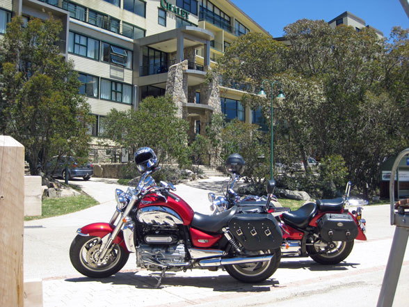 On our 2008 High Country trip we stayed a couple of nights in the Mt Buller Chalet and decided to ride up and see what (if anything) had changed. They have a new resort centre which looked good and there were heaps of people and pushbikes about. They had a mountain bike challenge of some sort on. I felt like a wimp looking at all the huffing and puffing and being grateful for my motor!