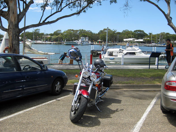 Since the temperature was hot and we had at least 45 minutes to wait for the tyre to be replaced we decided to head for Paynesville on the Rocket to have lunch. Neither of us had been there for quite a few years and were a bit surprised that suburbia has crept out as far as the cemetery. In any case it was a nice ride along the river and we found a handy café (one of many now) and had a delicious lunch and watched with amusement (me) / tremendous pride (Norm) at the amount of interest the Rocket caused the passing public.
